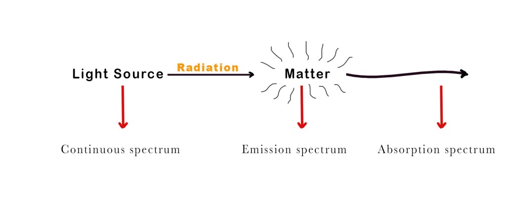 A spectrum is a chart or graph showing how light interacts with matter. There are three types of spectras –