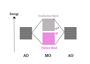 In the 20th century, Quantum Mechanics started stirring up the scientific world. The quantum theory was deployed to explain many unaccountable scientific observations. Walter Hitler and Fritz London did the same. They applied the quantum theory of solids – the Molecular Orbital Theory (MOT ) – to the Avogadro number (6.023 ×1023) of atoms. When the linear combination of atomic orbitals (LCAO) approach is applied to such a large no of atomic orbitals(AOs) we get bands of molecular orbitals.