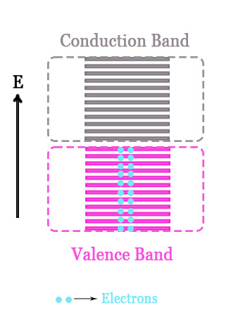 If there is only one electron in the valence shell of the atom, then the band will be half-filled. Electrons from two atoms will pair up in the valence band. The ABMOs/ conduction band will remain vacant. In this case, the energy gap between the highest occupied BMO and lowest unoccupied ABMO is so small, that with a little potential difference, electrons can be excited from the valence band to the vacant conduction band.
