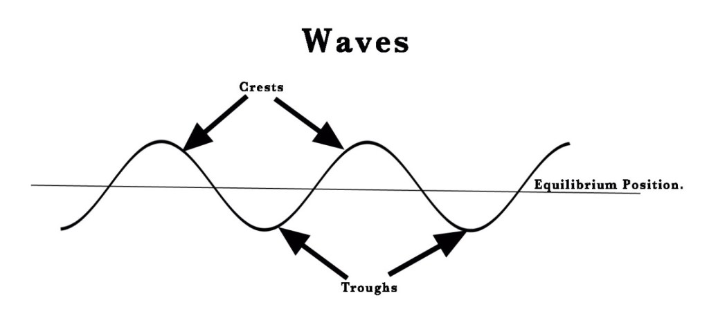 Radiation means ‘rays’ or ‘waves’. Waves are vibrations having crests and troughs. As seen in the figure below, crests are above the equilibrium position and troughs are below that position.