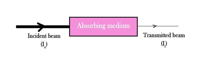Consider monochromatic light with incident intensity I0 ,which passes through a solution. The beam which comes out after it has passed through the solution is called the transmitted beam. The transmitted light intensity is given by It.