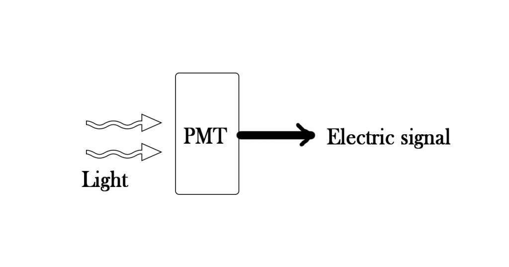A detector is a device which converts the transmitted light into proper electrical signals by photoelectric conversion. These are made of photomultilpier tubes(PMT) , which have a photosensitive material in them. As light strikes them , electrons are emitted through the surface which help in giving the signal. The signal tells us the intensity of the transmitted light(It).