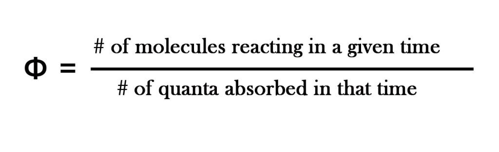 Quantum yield is defined as “the number of molecules of the substance undergoing the photochemical change per quantum of radiation absorbed.”